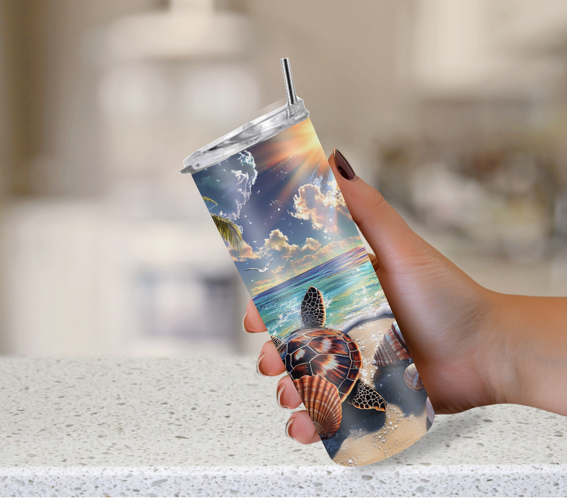 Indulge in the tropical vibes with our Palm Trees and Pretty Things 20 oz tumbler! Featuring a vibrant beach image, this tumbler keeps your drinks at the perfect temperature while you daydream about your next vacation. Bring a touch of paradise to your daily routine with this stylish and functional tumbler.